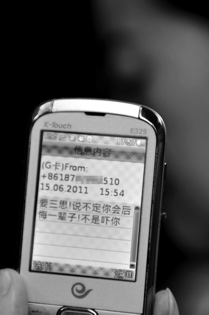 江女士认为装修公司使用了不合格的油漆 江女士收到的威胁短信