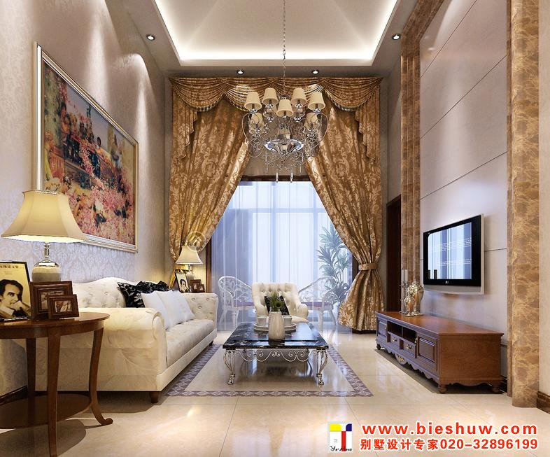 别墅装修设计时客厅空间应比屋内每一个房间大,客厅气场较盛,家人相处较有凝聚力,家长较能建立领导地位,如果空间不够大,家具不宜摆设太多。