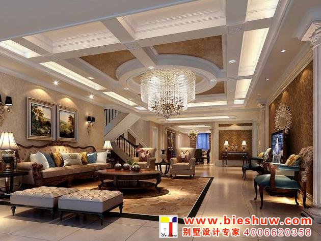 别墅客厅较一般空间大,所以其中色彩和照明的应用可以反映主人艺术审美和个性特点。在色彩上要做到统一有序,避免使用过多的色彩,而导致整个客厅看起来觉得十分凌乱。白天的时候,光线以自然采光的为主,要尽可能的将自然光线引入室内。夜晚的时候,以人工照明为主,但要保证客厅的敞亮。其次,还可以通过灯光来增长空间的条理、烘托气氛。