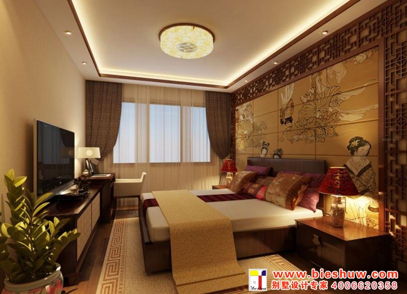 别墅卧室中式装修上床头饰物怎么摆设,不但影响了人们的睡眠以及卧室的美观,还是会影响卧室的气场的。