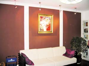 现在装修对个性有两种错误的认识:一种是认为装出个性,就是要花很多钱,其实不然。我的客厅既没用品牌的玻化砖,也没采用木地板,而是用青石板配以16厘米宽的“金碧辉煌”理石边,庄重而古朴,花钱还不多,每平方米青石板为60元,算上所用 大理石 ,每平方米合计不过100元,与中高档玻化砖和木地板相比,实惠而张扬个性,配以伊力诺依简洁的 沙发 和实木玻璃门藤芯书柜以及青花瓷瓶,韵味十足。再比如,夏女士家的客厅主题墙,所用材料不过是两小桶咖啡色立邦墙漆、4.8米长欧式石膏线和用四条18公分宽2.4米高大芯板做成的罗马立柱剖面,再配以一幅“香水百合”的 油画 和四个小 射灯 ,一个简洁而赋予个性的客厅便跃然眼前,其材料花费也不过400元。可见,装出个性,不一定要用钱堆。