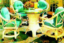 从色彩上看,藤制家具的色彩丰富多样,有本色、黑色、黄色、绿色、紫色等,它为居家空间平添了一份生机。其淡雅的色调和任何明丽大胆的色彩搭配都不会显得张扬浮躁,衬托和补充了居室空间的整体色彩。