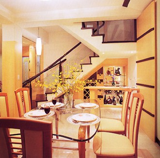 楼梯下方原来是一间厕所,不但气味不良,空间也显得窄小,改成吧台和储酒区,不只取用方便,而且邻近餐厅,还能妥善利用空间。
