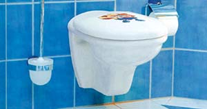 新颖可爱的挂墙式座便器不会因为年龄的变化而影响使用,盖子上可以加一些儿童喜欢的装饰图案。