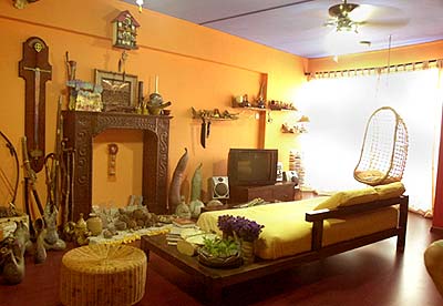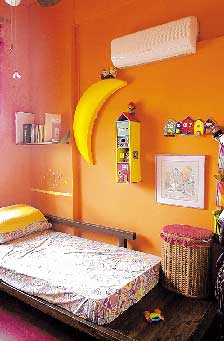 房子的家具大量采用色调深沉的柚木,与色彩鲜艳的墙壁,相互衬托。男主人认为,柚木坚固,而且耐看,达到美观实用的效果。