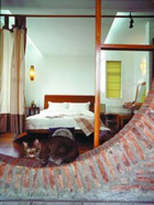 跨过连接卫生间与主卧的圆拱门,脚便触到了光润的木地板。地板的触感舒适,绝非一般的地板可比,一问主人,才知是极好的正宗“泰柚”,而且大有来头。木头是行家从西关那些旧时官宦富贾的老房子里拆下来切割而成的,晏忠用100多元每平方米的价钱买下来,再请人抛光上油打磨。木头这东西,因为有了年头,有了更多与人的接触,就像玉器一样会越来越温润。和主卧不同的是,两间客卧用的是竹木地板,和竹木配套的还有那张小竹床,晏忠按杂志上的样图,专程找熟手工人订做的,花费不过300多元。竹的感觉很清新,非常适合广州的热天气。