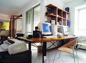 因为男女主人都是从事设计工作,自由的工作性质让他们有比其他人更多的时间在家里做SOHO一族,工作区同样也就成了家居中极为重要的一部分。于是,他们以工作区为中心,周围是开放式的厨房、客房、小书房,开放的空间更适合交流,一个很职业的工作区域也让居家与工作这两种状态转换起来更灵活自如。