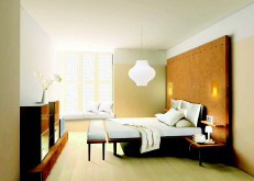 主卧:卧室装饰设计应追求静、雅、柔的效果,但也不排除整体感和宏大气势的营造。在本案设计创意上,设计师以两排双层立柜为主要元素,追求卧室在视觉上的统一;刻意的 光源 设计,突出了卧室用来休息、看书、谈流的三大功能。