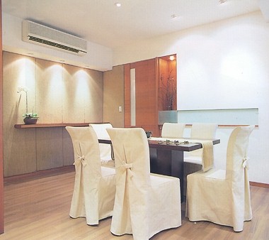 椅套如裙子一样,令人想起婉如的女孩。简单的家具陈设,感觉非常干净简明,食欲大增。
