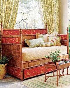 推荐花色:要根据使用的面积确定花色,并让花纹形状大小与使用的位置协调,专家建议,在选择靠垫的花布的时候,一个靠垫最少要有5个完整的花形,才能体现出花布的美感。床帏的选择则要淡雅清新的花布。