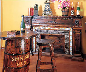 粗犷却不失隽永,从造型设计到细节处的打造,处处体现大家风范。此外,西班牙乡村家具的另一特点是在木制家具上镶嵌瓷砖。酒桶吧桌 4275元 吧凳 1300元 壁炉 9900元 比利时吉万达家具