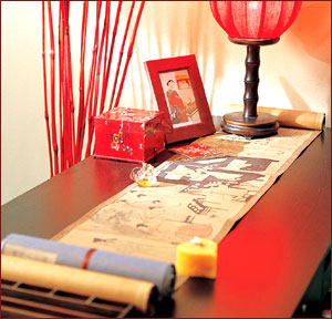 如果空间允许,适当的卷轴和条案可以尽显中式的风度。