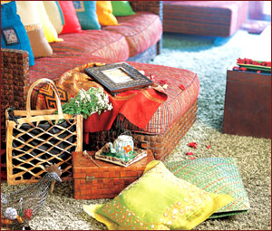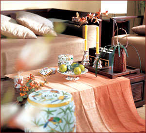 中式风格的家具用品和刺绣靠垫营造出一份低调的奢华。
