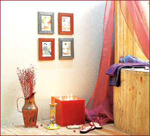 即便是在休闲随意的洗浴间,也不忘注入些中式元素。
