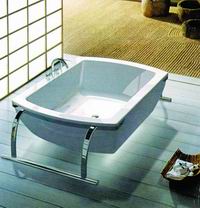 主卫的面积很大,如果你贪图纯属个人的沐浴享受,乐家的沐秀Emotion双层压克力浴缸绝对不容错过。它有着2.5×1.3米的身型,呈雪橇形的镀铬金属支脚比传统的独立支脚要大方简洁,有一种很舒服自在的意境。