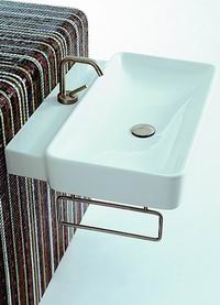 客卫的面积有限,所以小体积的洁具是最合适的选择。博洛尼推出了一系列尺寸可爱的洁具,釉面光洁不挂脏,即使平时用来洗衣物也很好用。