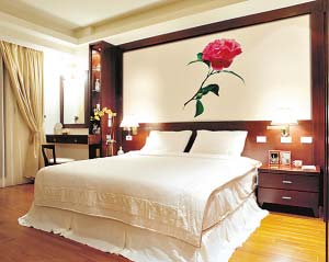 另外,根据房间的面积空间选择壁纸也很重要,宽敞的房间选用大花朵图案的壁纸,可降低居室的拘束感,使空间显得饱满;面积狭小的房间应选用图案细密、颜色清淡的壁纸,给人以明亮感从而扩展空间,也可用竖条纹图案来增加居室的高度。