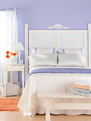 搭配方案:用纯白的家具搭配明亮的淡紫色。颜色不要过于匹配:用些不同的颜色打破单调,比如嫩蓝色的装饰床头板,或选用其它冷色调装饰品。选用不多的暖色调装饰品突出亮点。
