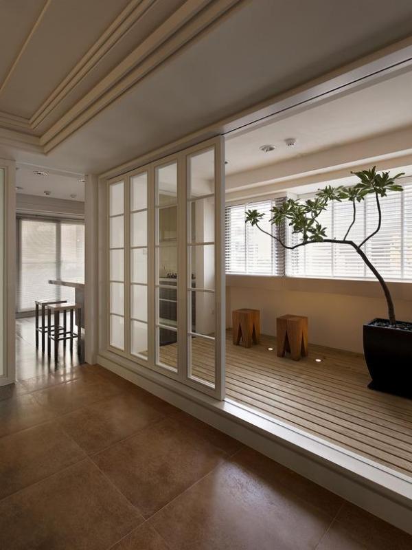 (2)室内墙面、楼层、天花板和家具摆设甚至灯具和餐具都是简单的造型、纯正质地、精细工艺。