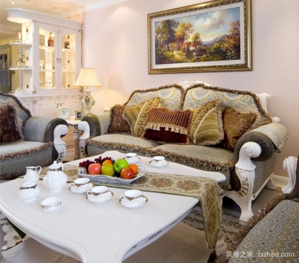 3、壁画也是一个很好的装饰客厅的东西,因为空荡的墙壁会给人感觉苍白空荡荡的,如果想要创造一点家的感觉,那么在客厅墙壁上悬挂几幅壁画吧,壁画的颜色尽量与沙发的颜色相衬。