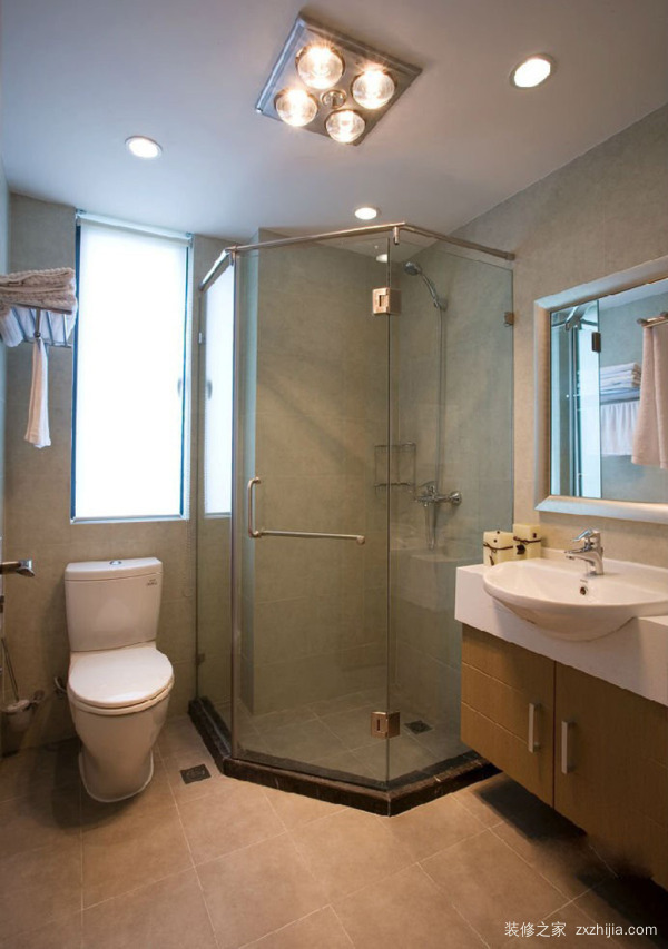 4、卫生间在装修的过程中要是有可靠的防水性与安全性的玻璃等密封灯具。在灯饰的造型上,可根据自己的兴趣与爱好选择,但在安装时不要最多。