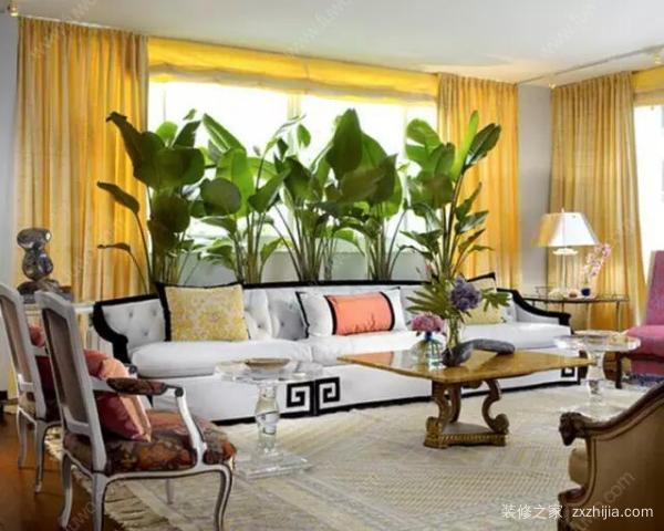 1.客厅摆放的植物有:富贵竹、蓬莱松、仙人掌、罗汉松、七叶莲、棕竹、富贵树、君子兰、球兰、兰花、仙客来、柑橘、巢蕨、龙血树等。,具有吉祥富贵的作用。
