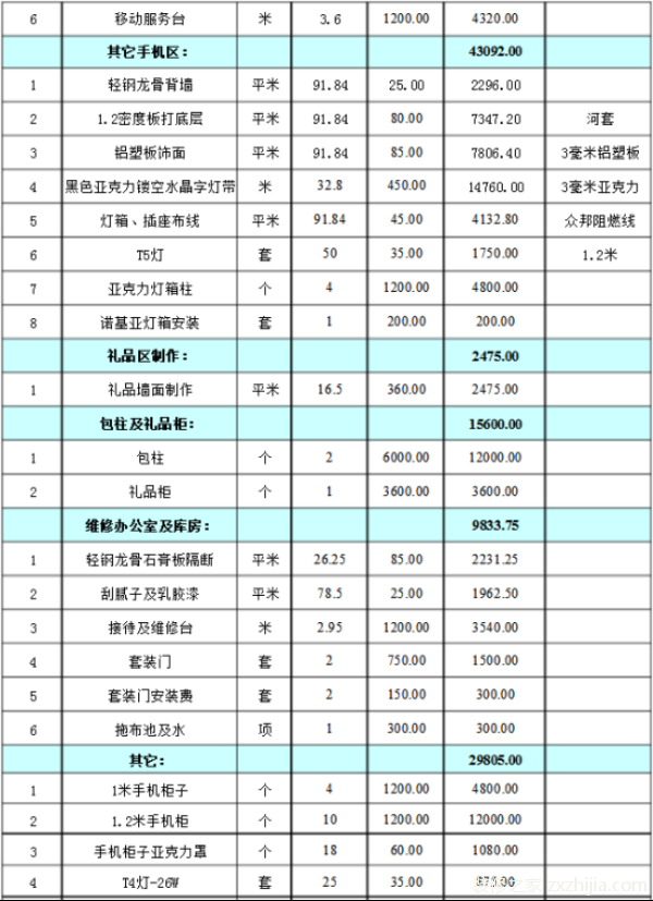 以上是小边为您带来的 手机店装修多少钱?2018年最新手机店装修预算表 的所有内容,我相信您在阅读本文后对手机店装修的成本有了基本的了解。如果您想了解更多的装饰咨询,请点击进入装饰知识频道。