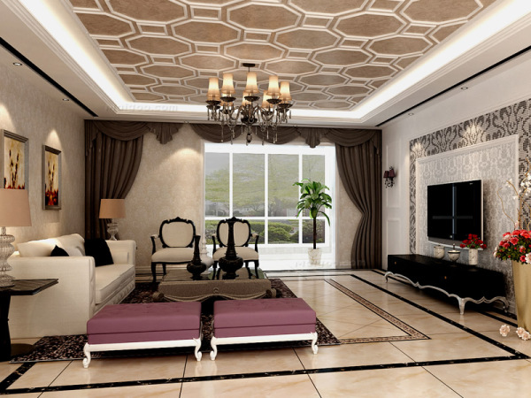 4.天花板上的禁忌:如果客厅的屋顶装饰有假天花板,那么糟糕的设计会让居民感到沮丧。客厅屋顶的天花板相当于风水中的天空,所以我们必须认真对待这项工作。