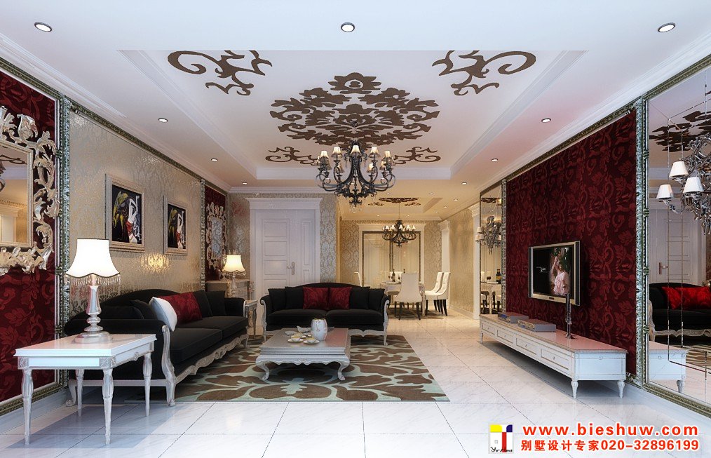具有强烈的装饰效果,在色彩上多以沉闷的暗粉色及灰色线脚相结合。除此之外,喜欢在室内配饰上选用金银材质也是其中的一个重要的表现,能够通过金银材质来展现出家居的质感和富贵的一面,在色调上也很好的符合别墅欧式风格设计中,金色主导下的金碧辉煌的视觉效果。