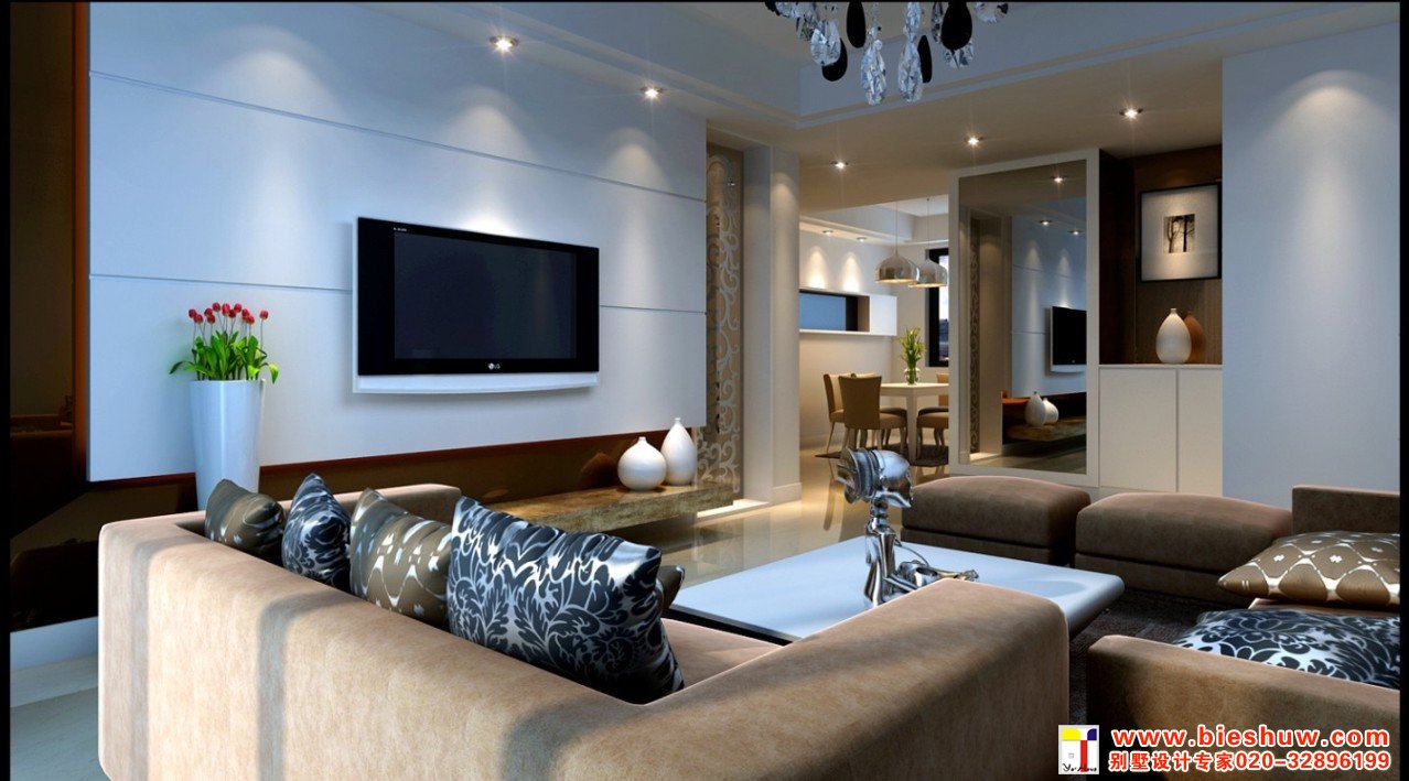 在家庭装修中,对于面积在30平方米以上的大客厅来说,则适合选择尊贵型的装修。为了避免空旷感,主墙面可选择较复杂的造型设计,颜色也可增至四种左右。材料的选择可选择性更加广泛,可根据主体风格来大面积选择大理石、烤漆玻璃、实木雕刻、喷砂玻璃或艺术壁纸,局部搭配乳胶漆、石膏板、大芯板混油等.其他侧墙也可在避免喧宾夺主的基础上根据需要做些造型。