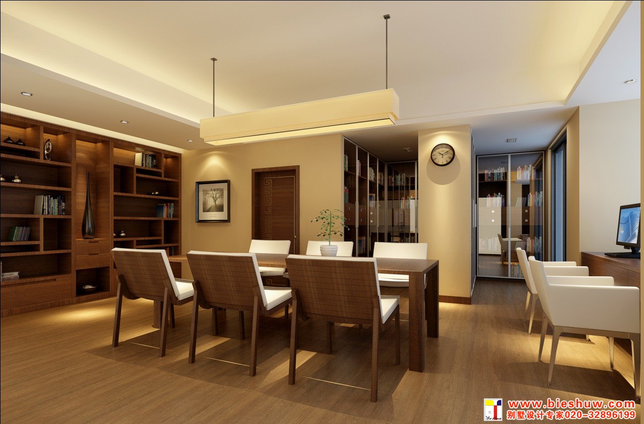 书房作为主人读书写字的场所,办公楼装修对于照明和采光的要求应该很高,写字台最好放在阳光充足但不直射的窗边。书房内一定要设有台灯和书柜用射灯,便于主人阅读和查找书籍。