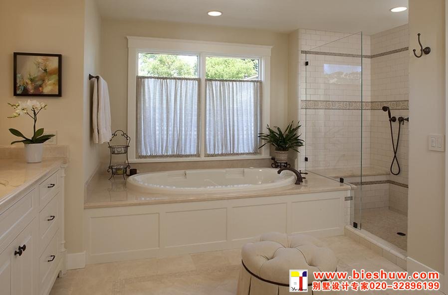 4、门窗:卫浴间最好有窗户,以利通风;如果没有窗,尤其要注意门的细节。为防止卫浴间的水向外溢,门界要稍高于卫浴间内侧;卫浴间的门与地面的空隙要留得大一点,以利于回风;如果是推拉门,还要在推拉门与卫浴地砖之间做一层防水。