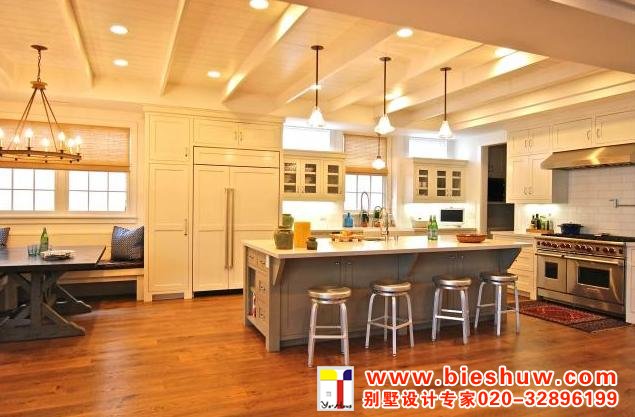 选用玻璃,展示效果强,不会让人感到压抑,在别墅装修设计过程中,首选资料是玻璃,特别是吊柜中玻璃边框的运用,非常有现代感,挑选视觉冲击感较强的金属资料和亲和力强的颜色,细心的人会发现,规划师较少规划颜色较暗的吊柜。