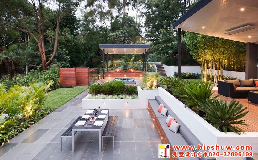 美式庭院整齐大气,在自然的气息中体会到温馨和舒适。应该是规划起来最容易、最简单的结构之一,其庭院的气氛严谨中带有随意,其中包括修建的非常得体的草坪和灌木,笔直的路径和大量的绿色植物。美式庭院一般面积都比较大,与日式的小巧是不相容的,户外家具的选择务必要是那些有设计感和品质感的经得起日晒雨淋的家具,虽然没事庭院在绿色植物的种植上比较随意,但也不可以由着性子乱来,而应该沿路或靠边有序的种入一些小株季节性草本科植物,比如牵牛、秋海棠、或者洋水仙。