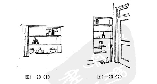 壁充一般指进深为10-24厘米左右,体量较小的凹龛空间,通常在局部墙壁上挖成(见图1-23(1)(2))。